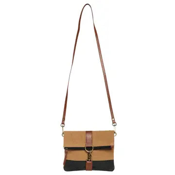 Size: 9" W x 8" H x 2" D Handle: 23" Strap Exterior Features: One Slip Pocket Closure: D Hook Closure Material: Up-Cycled Canvas brown sugar rawhide rexine. Short Description: Just need the essentials? We've got you covered. This crossbody is the perfect size with a slip pocket and a zippered top closure to keep your items secure while on the go. Features a 23" strap, exterior slip pocket, interior pocket with zipper & dual slip pockets, and RFID blocking technology with zipper top.