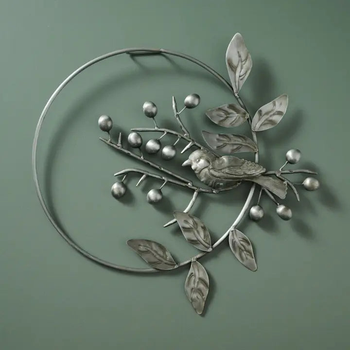Materials: Iron - Measures: 16"W x 15"H - Colors: Silver, with antique finish - Pictured with greenery, not included - Handcrafted in India