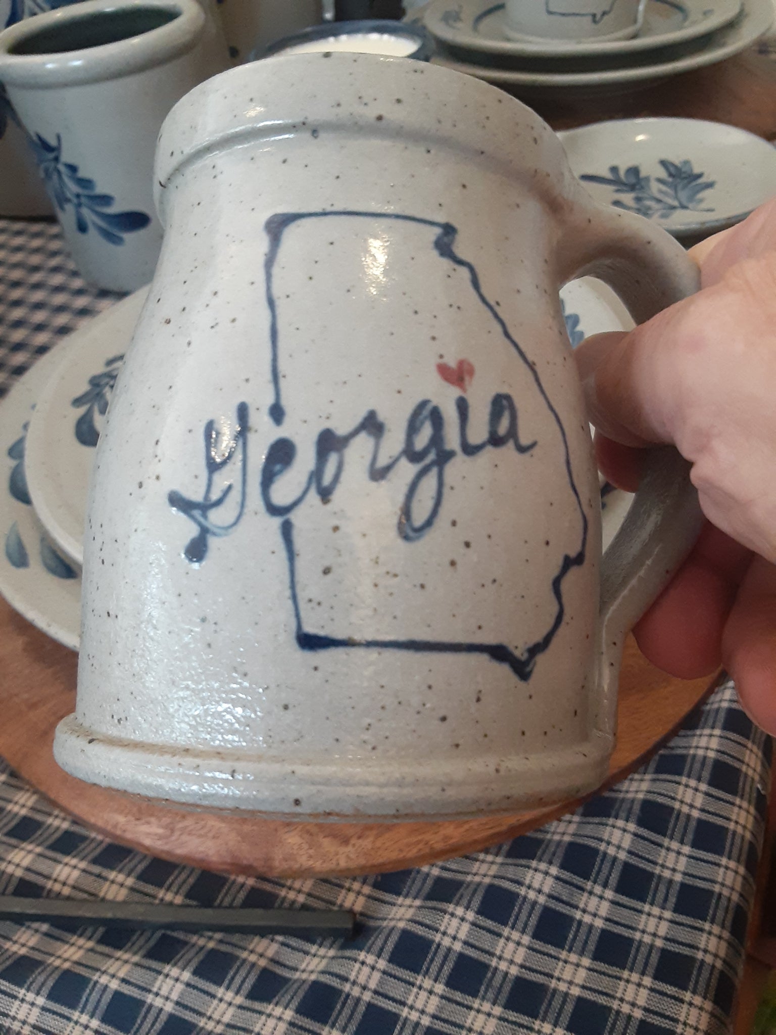 Celebrate your love of your home state with our customized blue and gray mug! It's inscribe with Georgia across the state outline. Available in all 50 states! This mug measures approximately 4.5 inches tall.