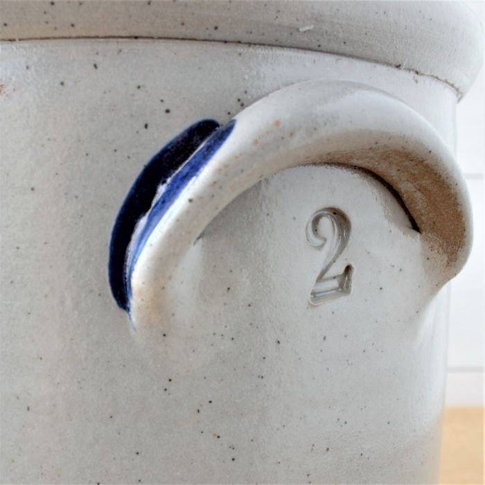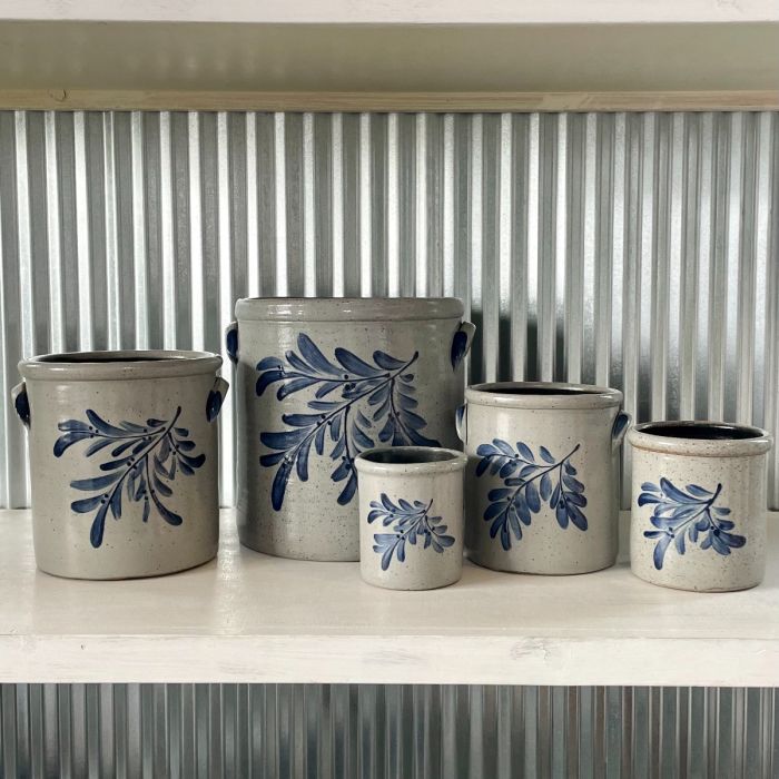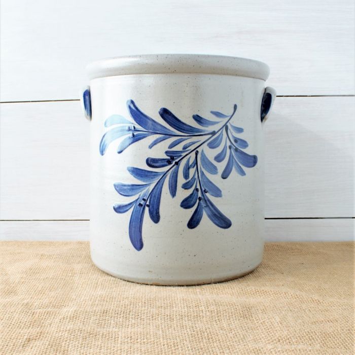 Our classic gray-blue glaze with Teaberry decoration in the 2 Gallon Crock makes for a stately piece and is perfect for a dramatic entrance by your doorway, holding kindling by the fireplace or on a porch with seasonal greenery.